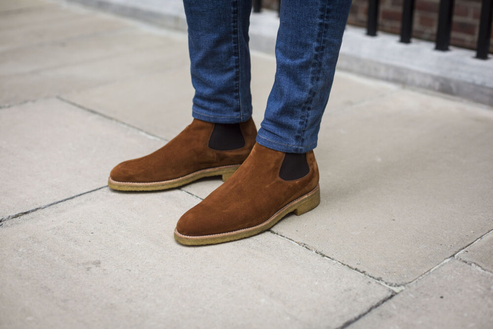 I regularly read your posts, and quite enjoy them. I personally avoid crepe soles. I have one pair, but they just are not for me and will be replaced with leather at recraft time. I can deal with the squishy feeling, but what I really don’t care for is how they age. They look fine new, and can add some visual interest, but one pass through a warehouse or down a city street and they’ll be forever stained a dirty grey.